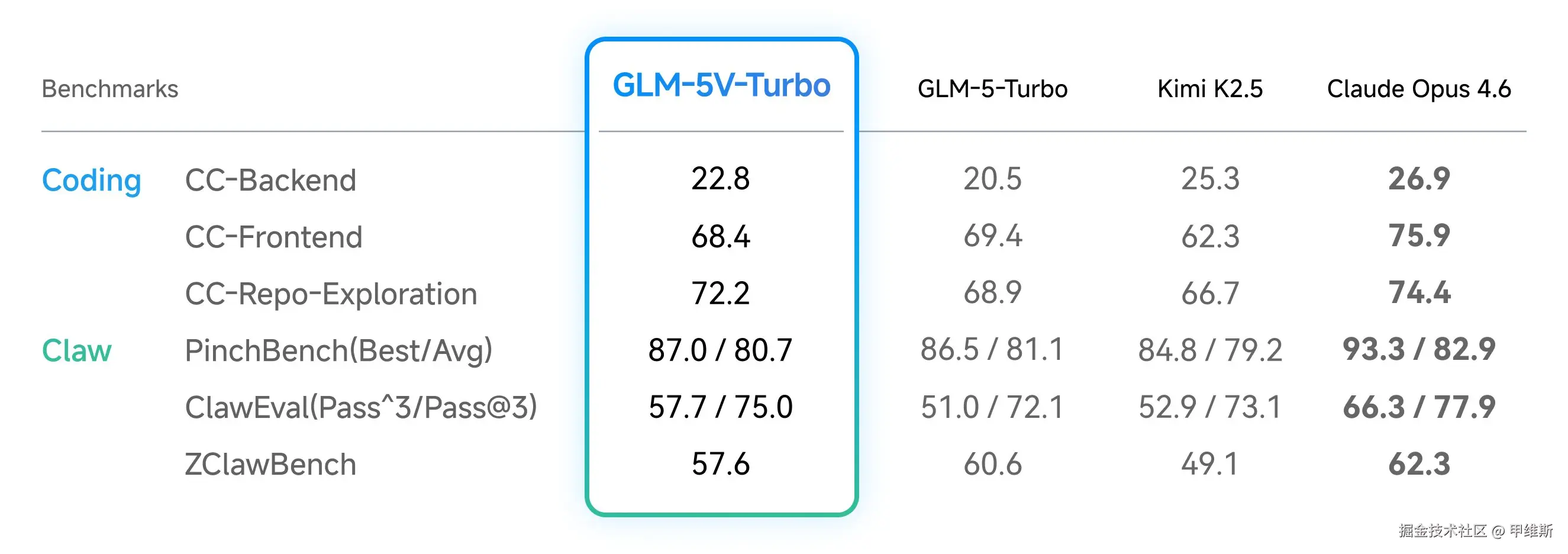 同时在 CC-Bench-V2 的三个纯文本编程评测(后端、前端、仓库探索)上保持稳定,证明引入视觉能力不会损害文本推理。
