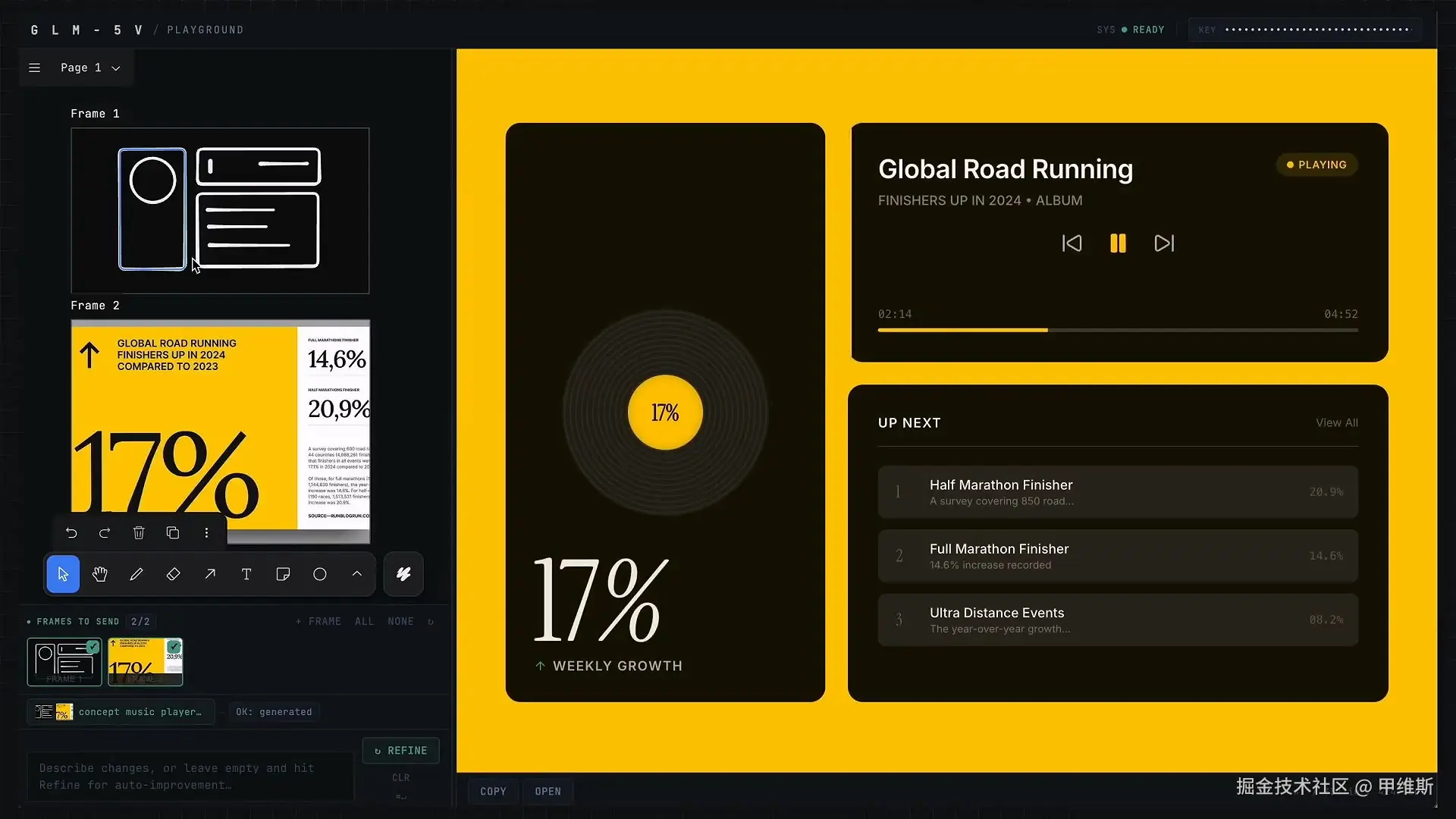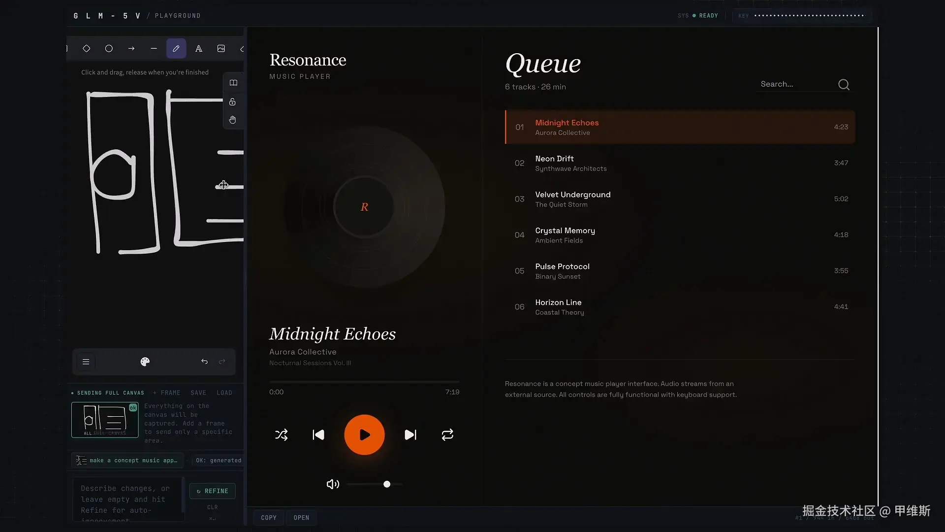 通过草图和参考图,以及提示词生成一个指定风格的音乐播放器。