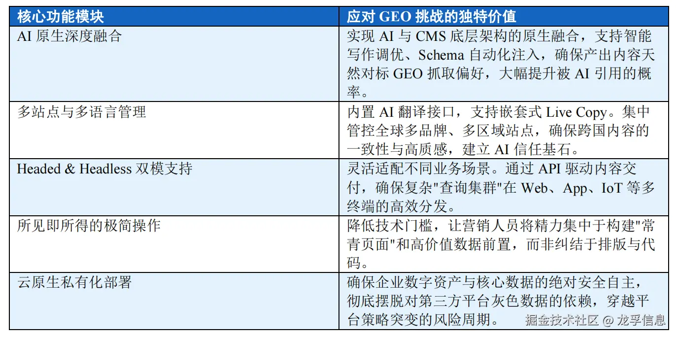 换言之,每个话题的"引用圆桌"上只有大约30 个席位。剩下的所有域名,只能在拥挤的角 落里争夺那可怜的 33% 残羹冷炙。面对如此极端的集中度,传统的"一个关键词一个页面"的修补策略已全面失效。企业亟需从底层架构出发,重塑内容生态。龙孚信息(DBC)凭借专为 AI 时代设计的 BMS DXP 内容管理平台,正助力出海企业与 B2B 品牌在这场席位争夺战中抢占先机。
