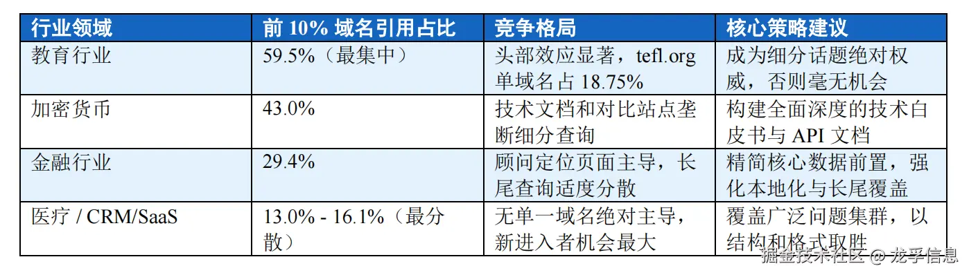 每个垂直领域的引用份额高度集中,品牌争夺异常激烈