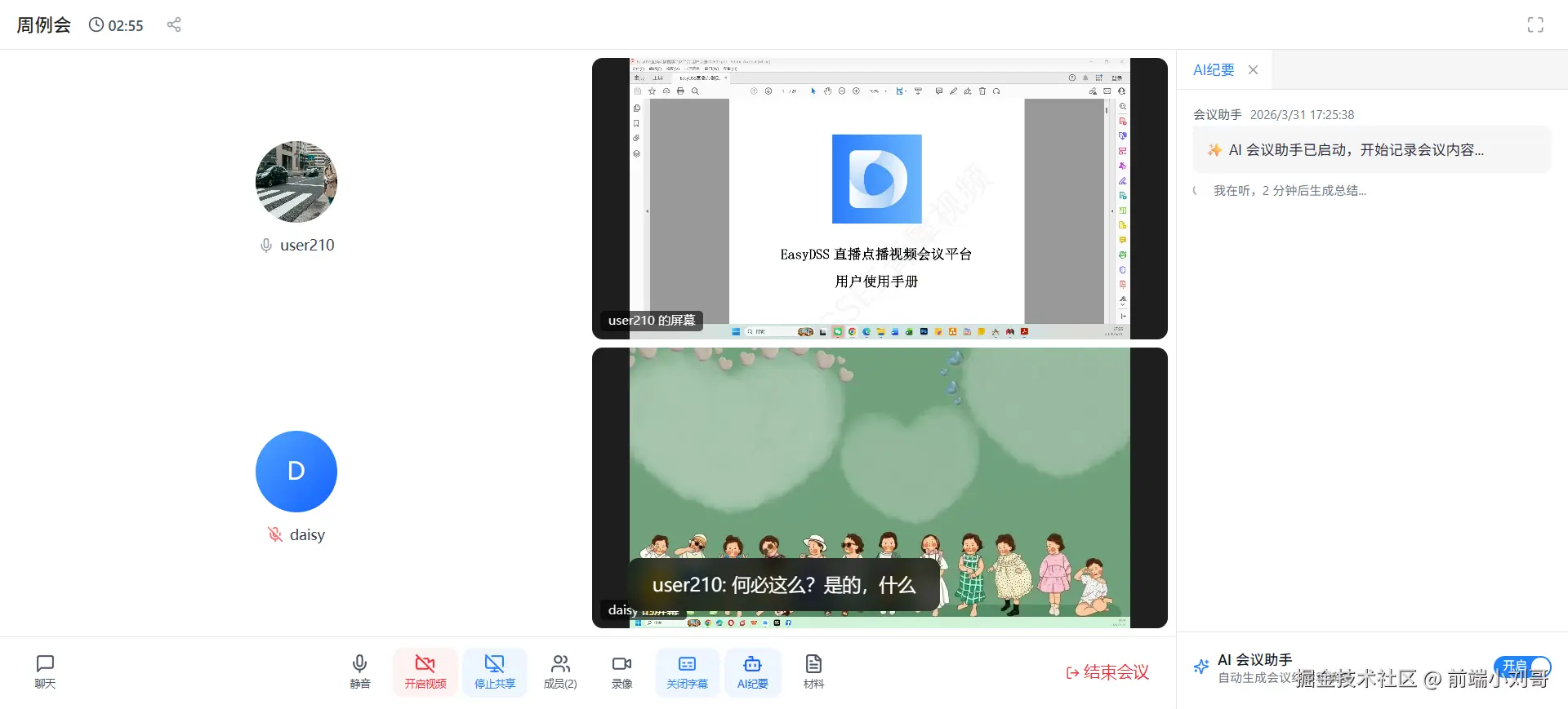 在企业协同、在线研讨、政务会议等强实时互动场景中,延迟与操作门槛是核心痛点。EasyDSS采用WebRTC+自研流媒体技术,将视频会议延迟降至200ms以内,支持千人级高清会议,无需安装任何插件,浏览器原生支持,真正实现“零门槛入会”,大幅降低用户使用成本。