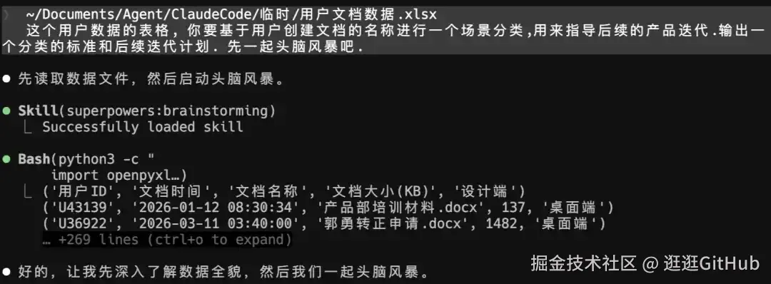 任务目标是让 AI 读取这些数据,基于文件名称做用户使用场景分类,然后输出洞察。
