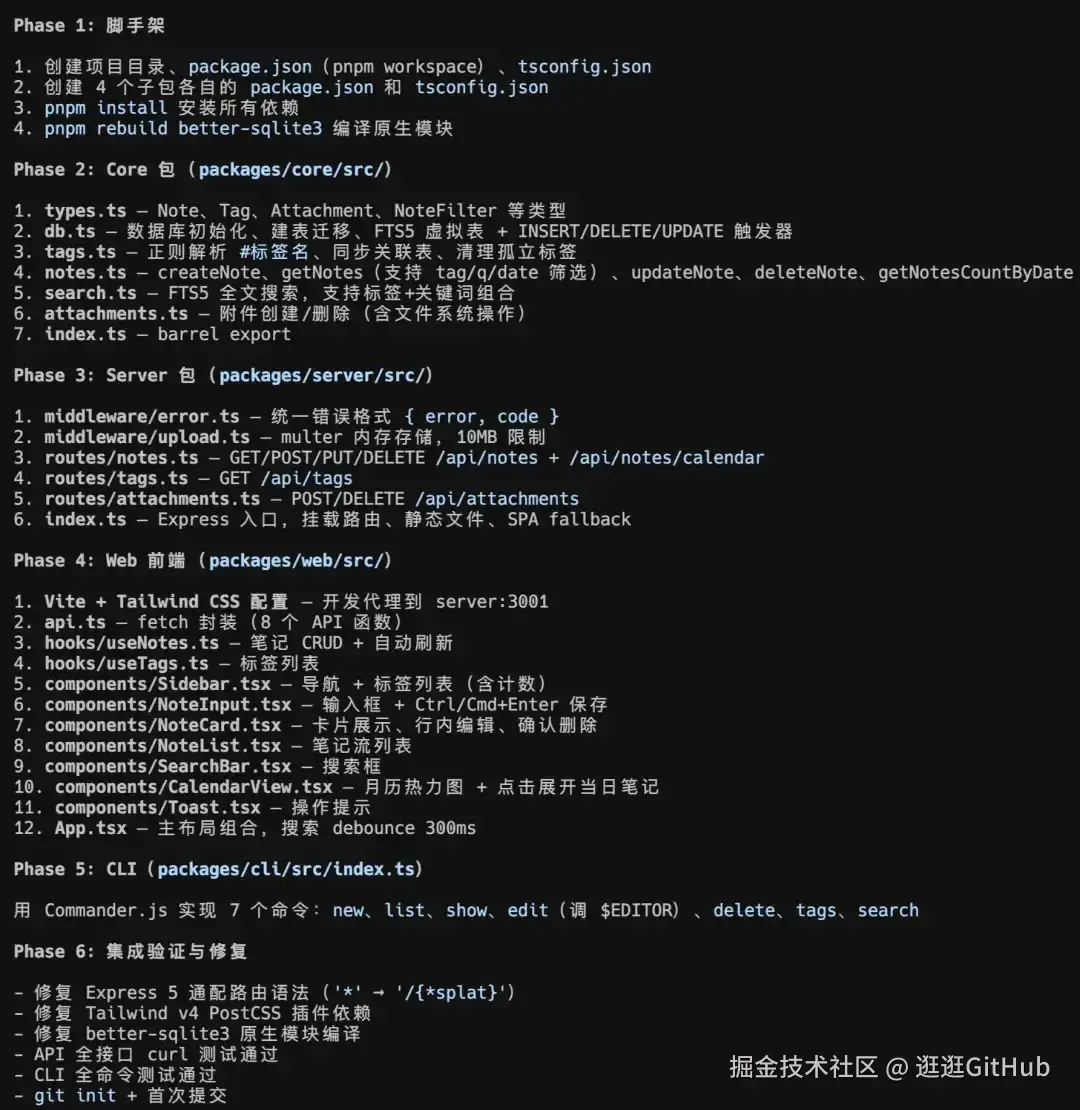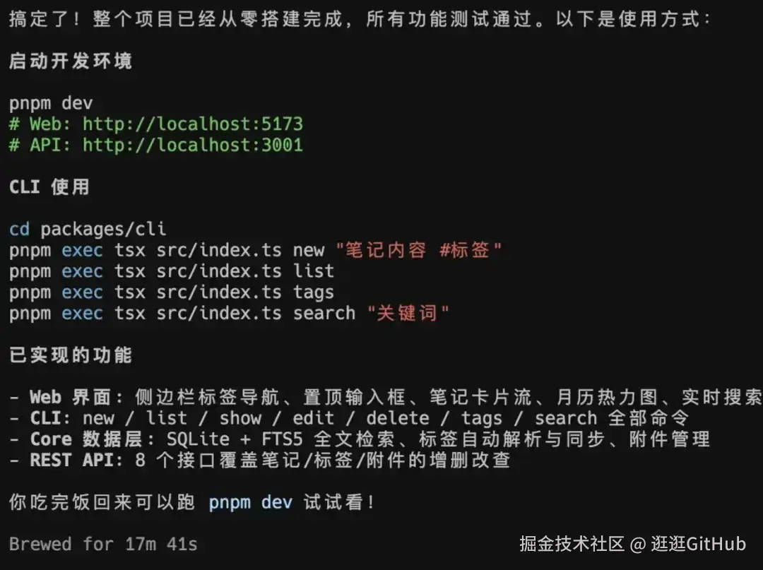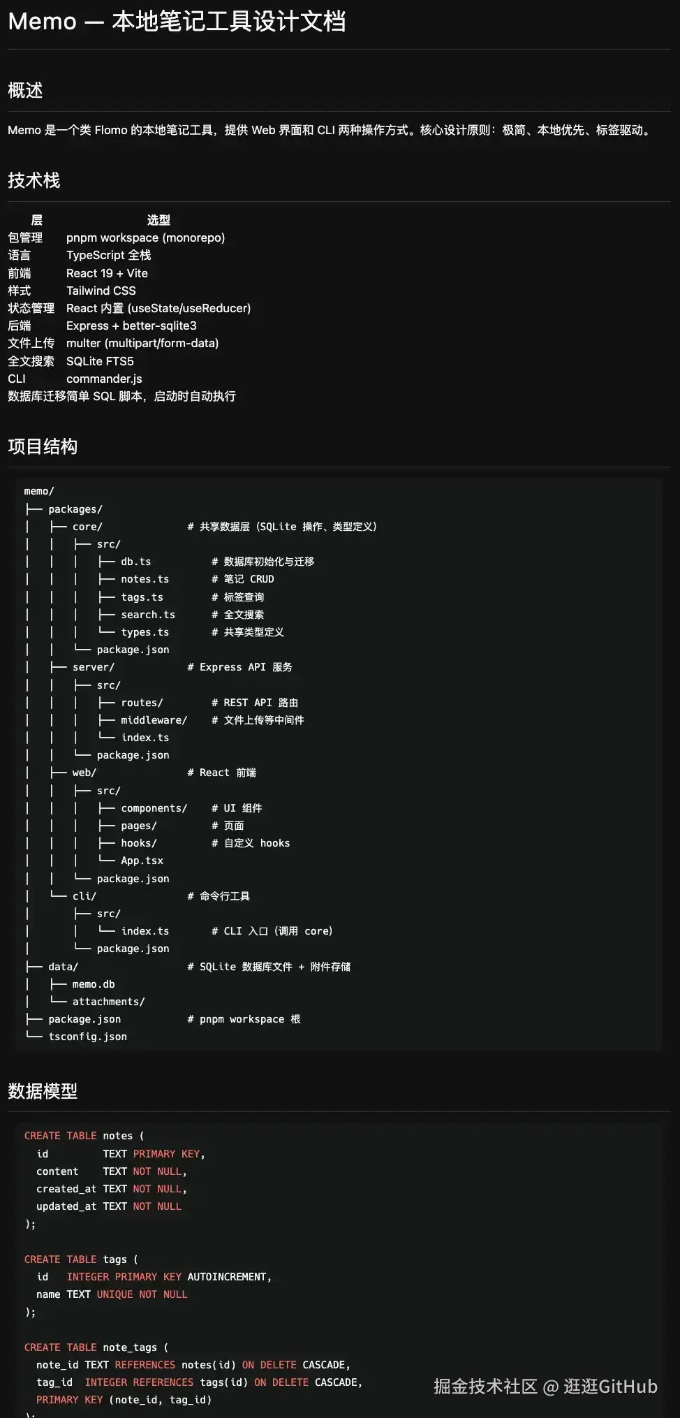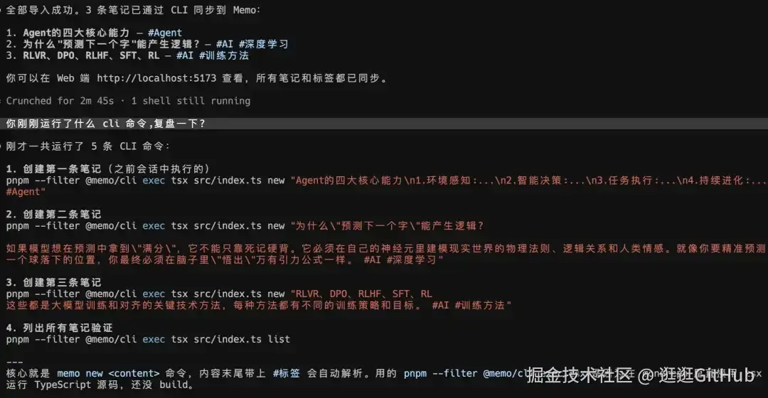 我输入:从零开发一个类似 memo 的本地笔记工具,支持 Web 端笔记创建、编辑、删除、搜索。同时提供 CLI 命令可以在终端里面操作笔记。