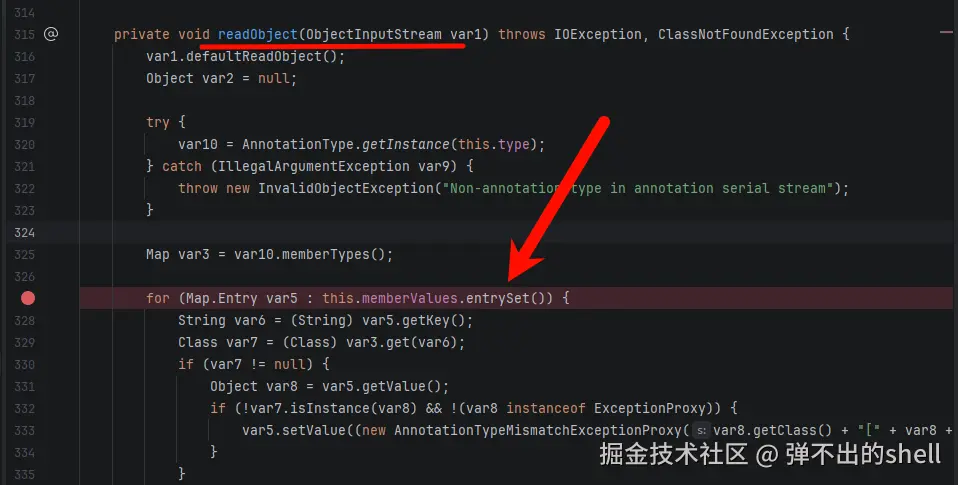 回到 AnnotationInvocationHandler.readObject() 源码: