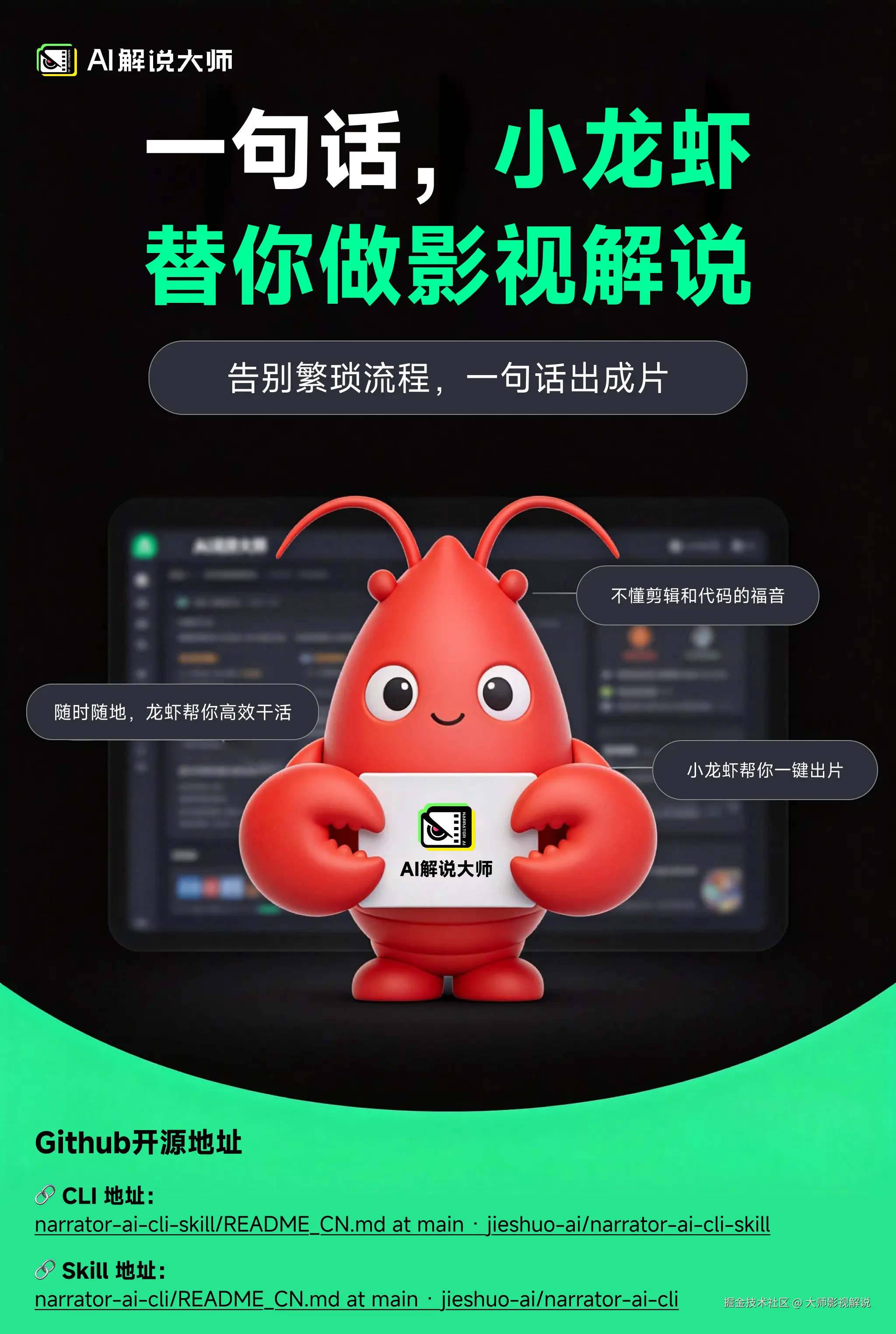 #电影解说工具 #AI电影解说 #skill #AI解说大师 #龙虾做电影解说 #批量生成视频 #电影解说 #cli #影视解说 #openclaw