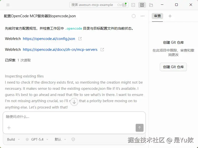 确保配置文件写入完毕后,需要先重启OpenCode客户端才能生效,按如下步骤执行操作验证。