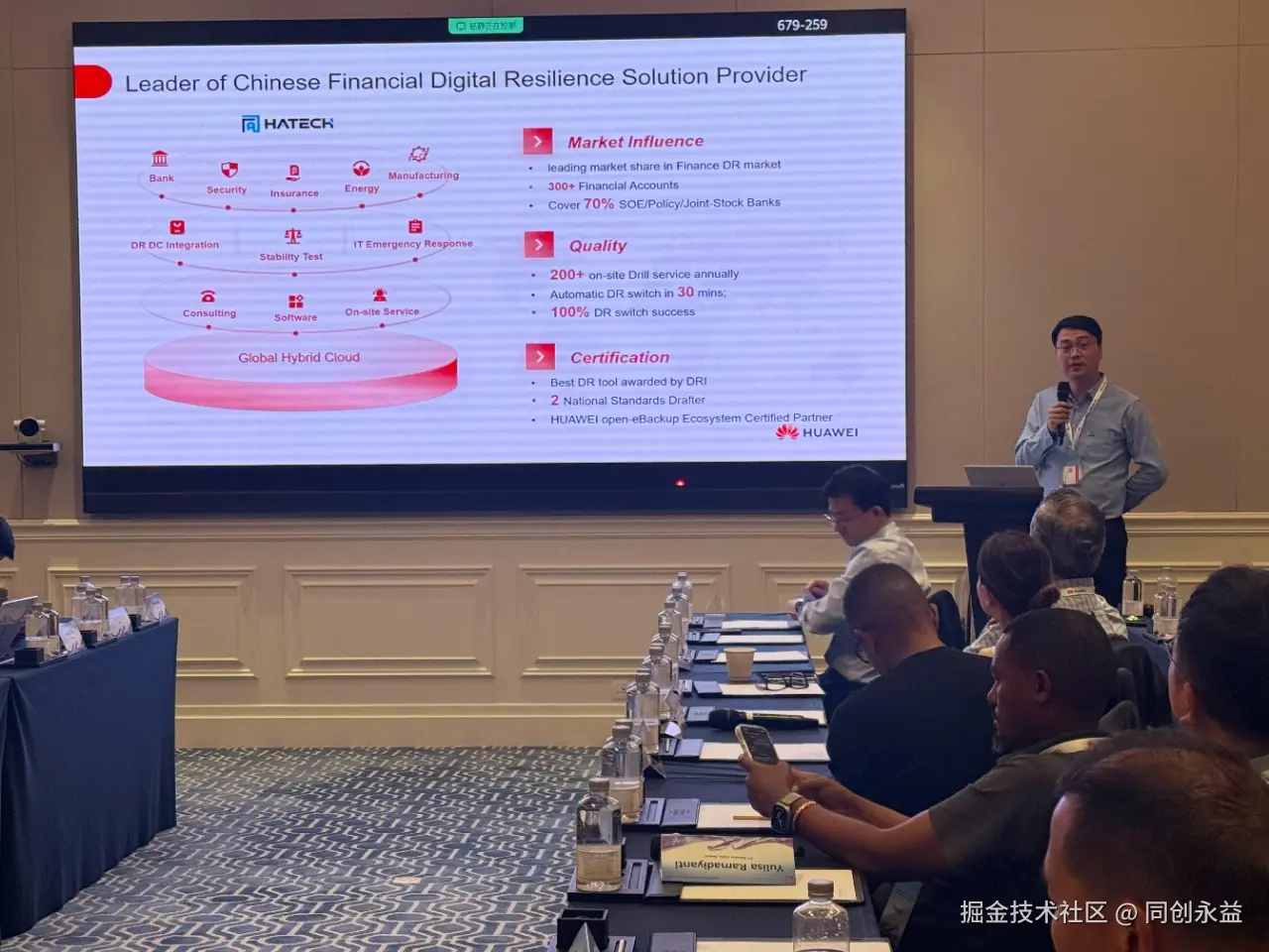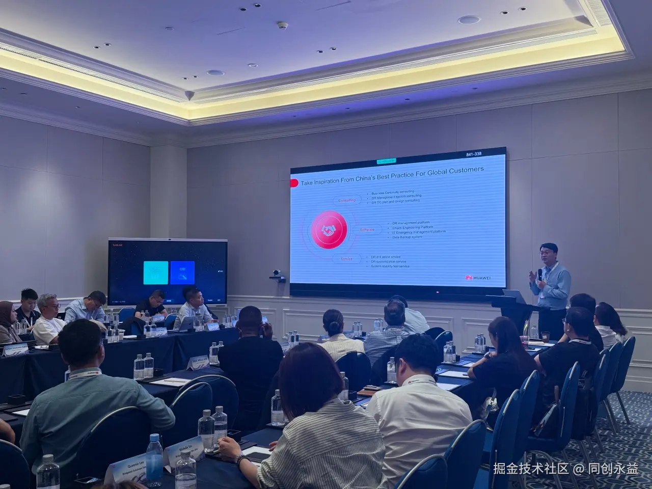 在同期举办的高端圆桌会议上,同创永益核心代表受邀登台发言,围绕AI重塑全球金融格局背景下的金融业务韧性建设与生态协同主题,分享了公司在数字韧性领域的技术沉淀、行业实践与创新成果。发言中重点阐述,随着金融行业AI技术规模化、体系化落地,技术架构愈发复杂,对系统稳定性、数据安全性、业务连续性提出了更高标准,数字韧性已成为金融机构数字化转型的核心基石。同时,详细解读了公司灾备咨询、混沌工程、IT应急等核心业务如何与华为算力底座、云基础设施、AI技术生态深度适配,表达了与华为展开全方位生态合作的强烈意愿,双方将携手打造更贴合全球金融客户需求的联合解决方案,助力金融机构提升智能化水平与抗风险能力,筑牢金融数字化安全防线。发言内容获得与会嘉宾的高度认可与热烈反响,为同创永益与华为金融军团、海外系统集成商及客户的四方共赢合作打开了新的大门。