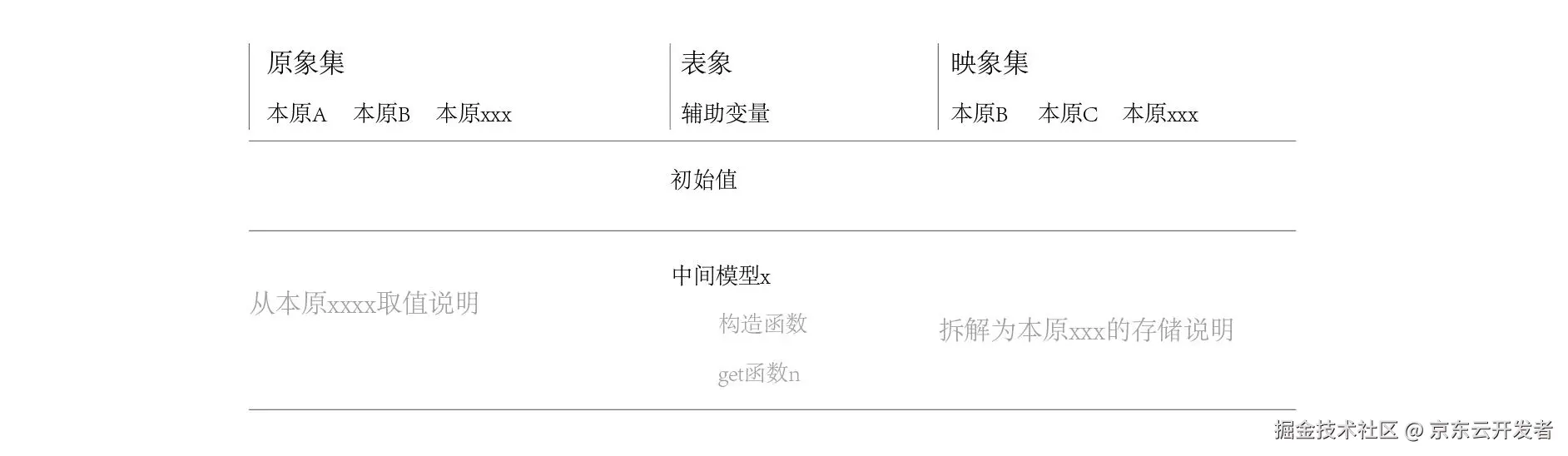 - 模型包含构造方法:以左侧本原集以及依赖的上方中间模型为入参,构造出中间模型。