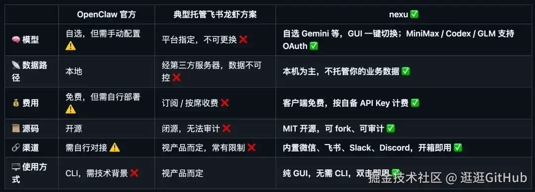 OpenClaw 这个开源的 AI Agent 框架用起来得折腾命令行和各种配置。nexu 把它包成了一个图形界面,双击安装,扫码连接聊天软件就行。