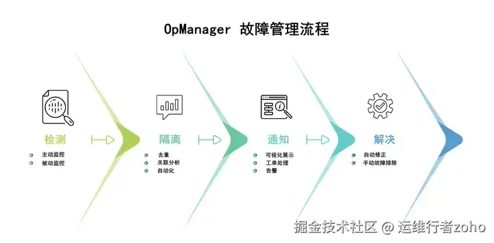 快速定位问题根源,而非仅处理症状。OpManager的RCA功能自动聚合设备、链路、服务多维度数据。