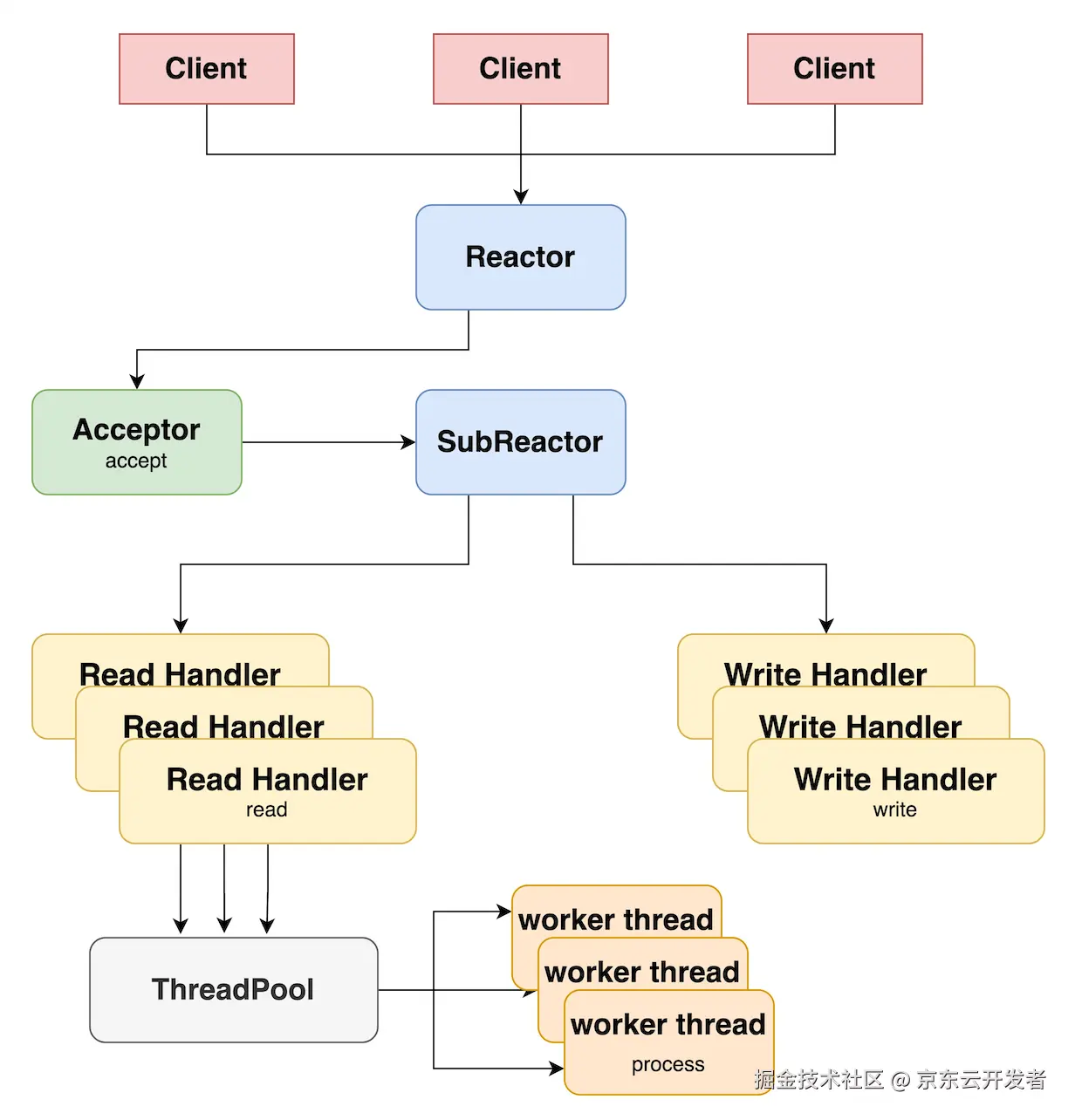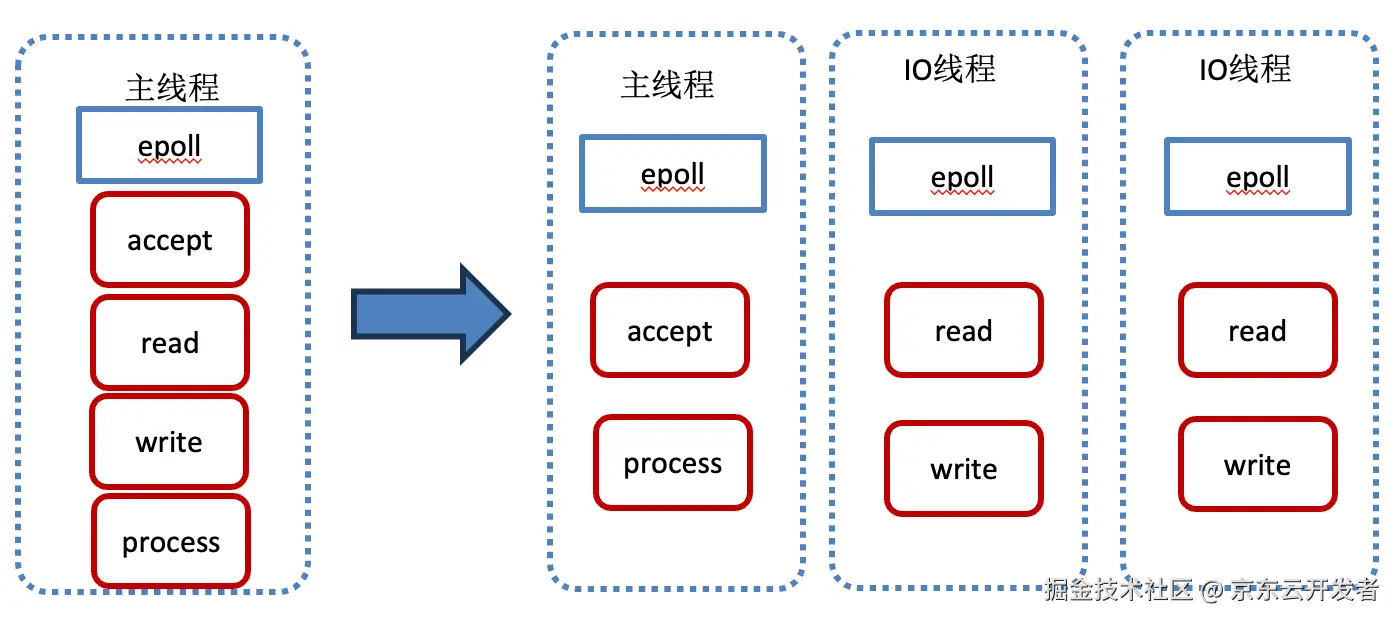 异步IO多线程就是来解决这个问题的,将原来的单Reactor单线程,变成了多Reactor主线程+IO多线程模式,将网络读写的开销从主线程卸载到IO线程。