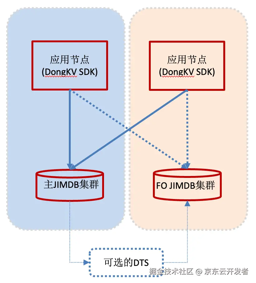 针对机房故障和集群故障的场景遇到的问题,DongK提供了双JIMDB集群,双机房部署的标准化高可用架构。