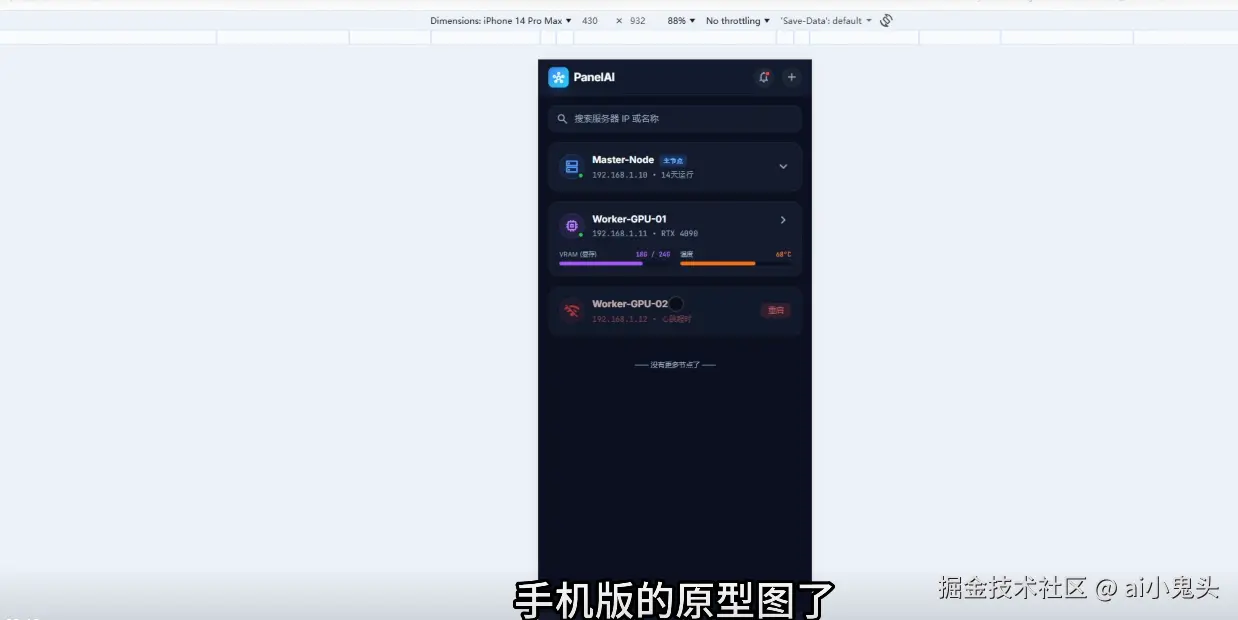 大家好,我是AIStarter作者熊哥。最近在视频里分享了Panelai的最新进展:手机版原型图已经开始绘制,后端+前端剩余工作量不到20%,投资近百万的AI管理系统正在加速落地。今天把视频核心干货整理成文,分享给掘金的开发者朋友们,一起聊聊这套系统的价值和未来规划。