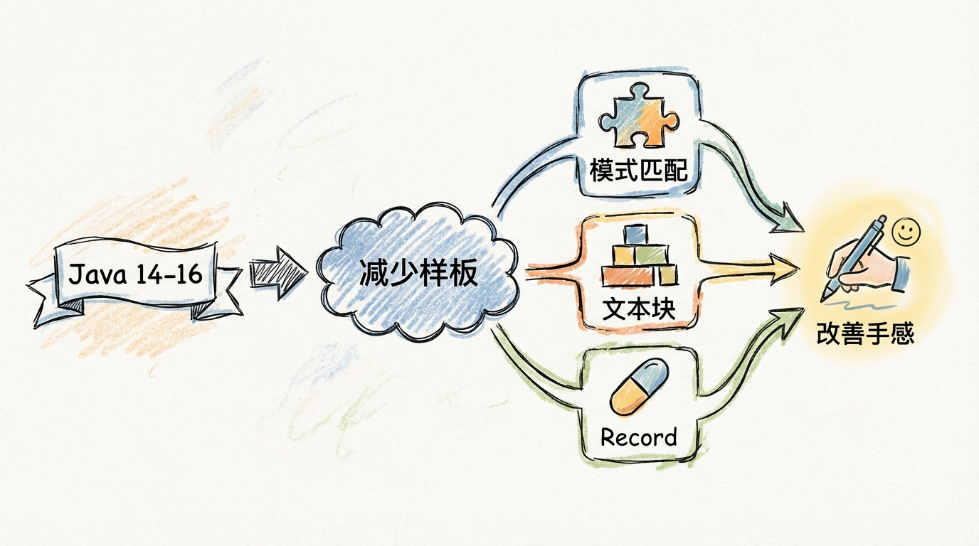 Java 14 到 Java 16 这一段演进,最直接的价值就是持续减少样板代码。