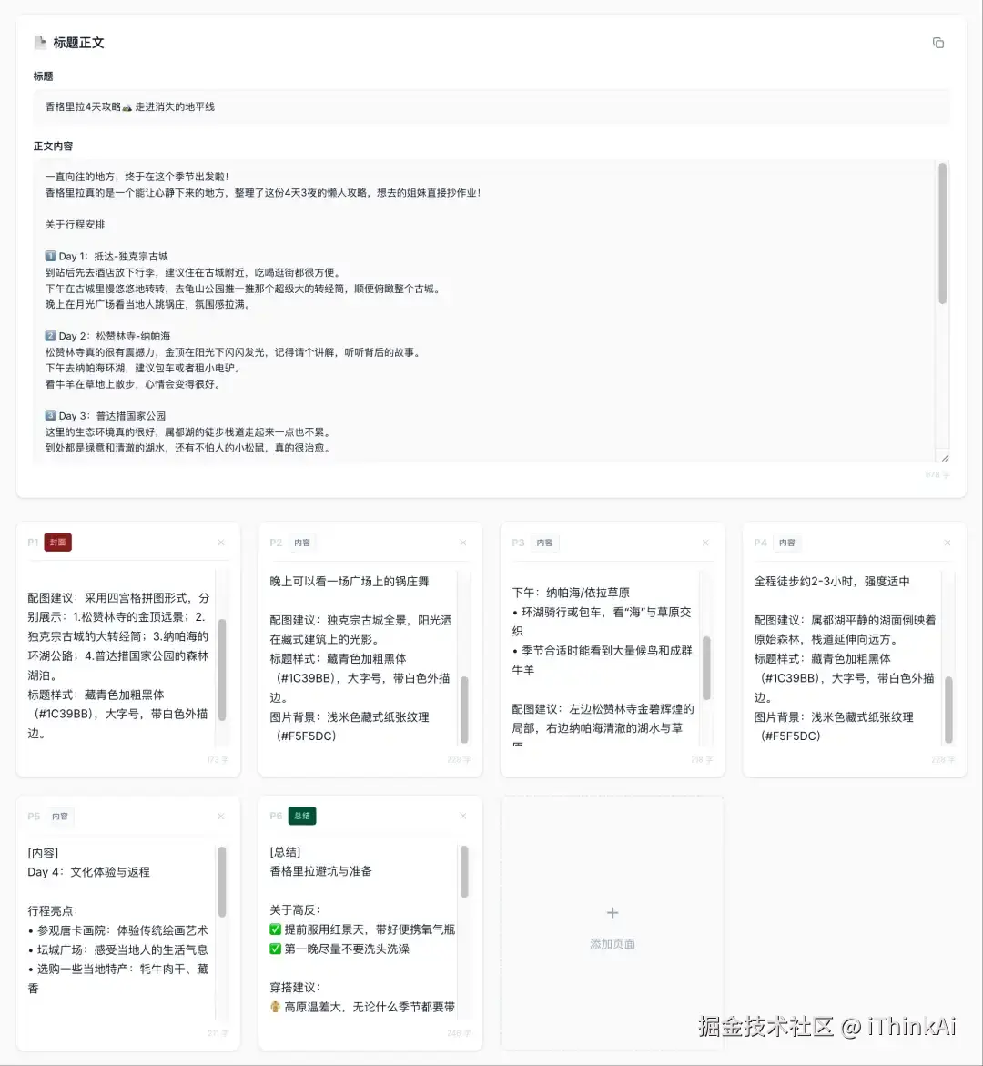 第二步:生成对应的标题、正文以及每一张图的图片描述。它会自动帮你把 9 宫格的每一张图要放什么文字、配什么背景都规划好,你甚至可以直接在上面微调。