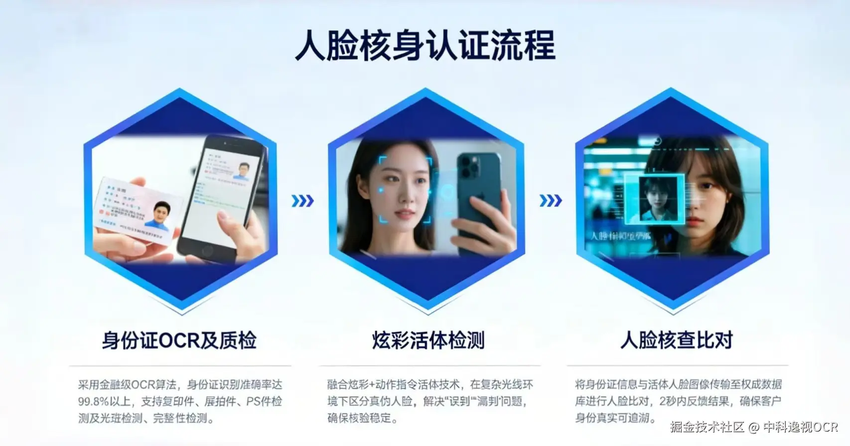 - 用户终端拍摄身份证→ OCR提取文本及证件照。