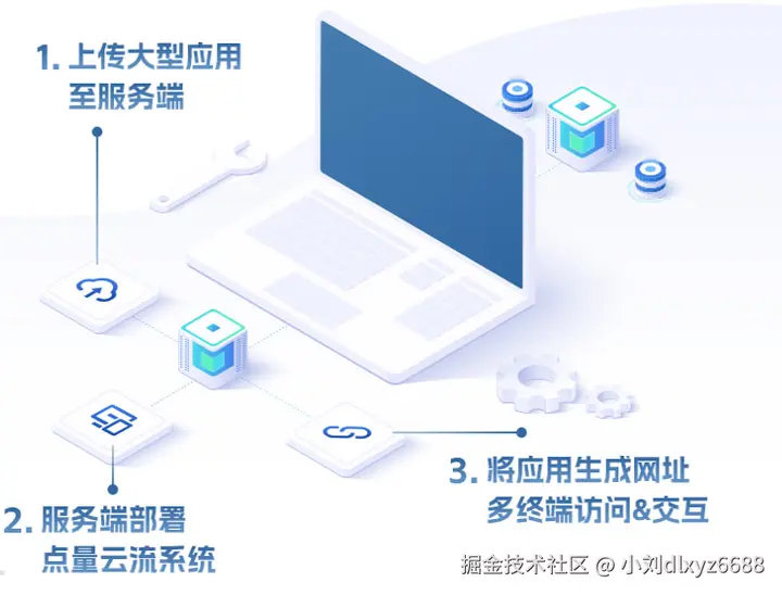 云流的技术方案,如点量云流是将所有复杂的图形计算和数据处理放在远程的高性能云服务器集群上完成。在云端,每一帧画面都被渲染成高分辨率的视频流,然后通过高速网络实时编码传输到用户的终端设备上。而用户的终端,无论是手机、平板、轻薄笔记本,还是AR/VR眼镜,其主要职责只剩下两件事:接收视频流,以及将用户的操作指令(如点击、拖拽、键盘输入)实时回传到云端。这种模式将终端的计算压力降到了最低。