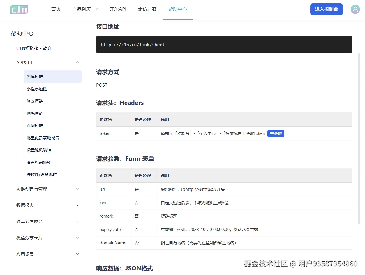 对于那些有技术支持且短链接生成量非常大的用户,如技术型公司、大型互联网平台等,C1N短链接(c1n.cn)提供了 API 对接生成短链接的方式。用户可以自行调用C1N短链接(c1n.cn)的 API 接口,将短链接生成功能集成到自己的系统中,无需频繁登录C1N短链接(c1n.cn)的后台进行操作。