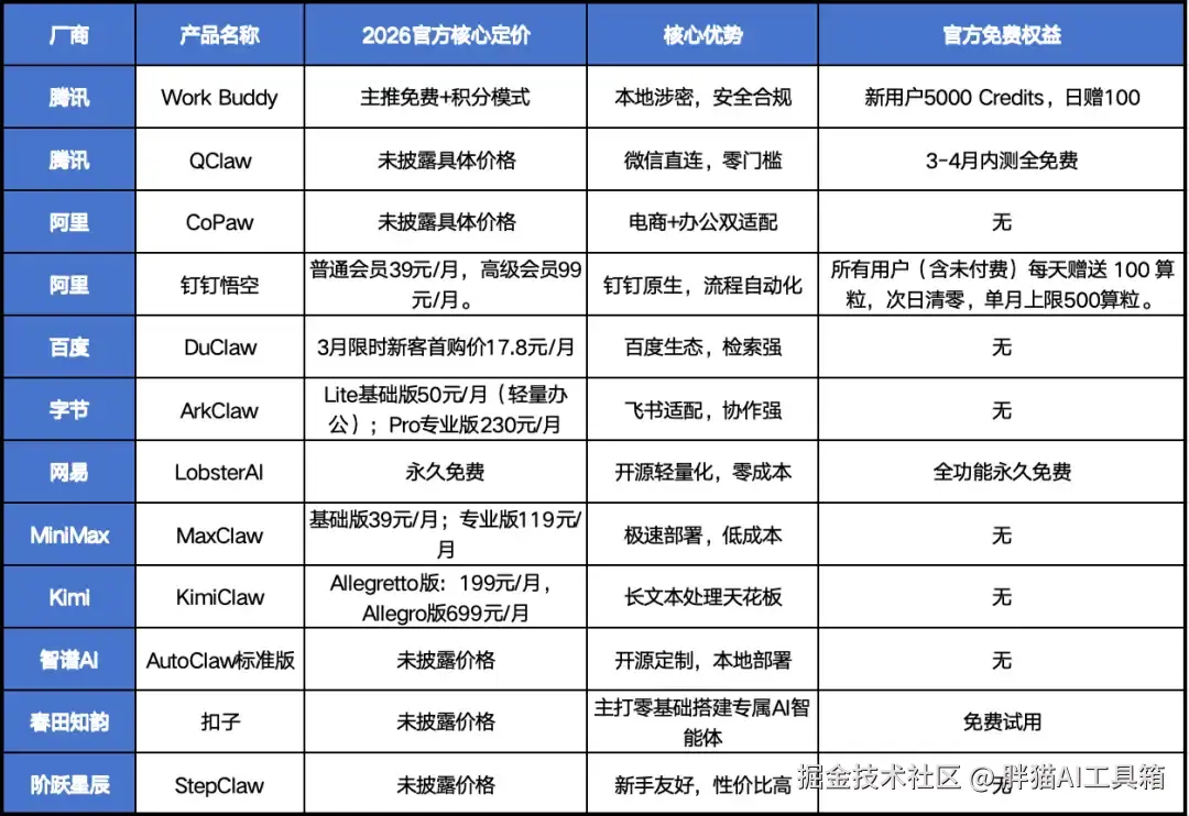 为了方便大家快速了解各产品的价格和核心优势,这里为大家提供一张速查表。