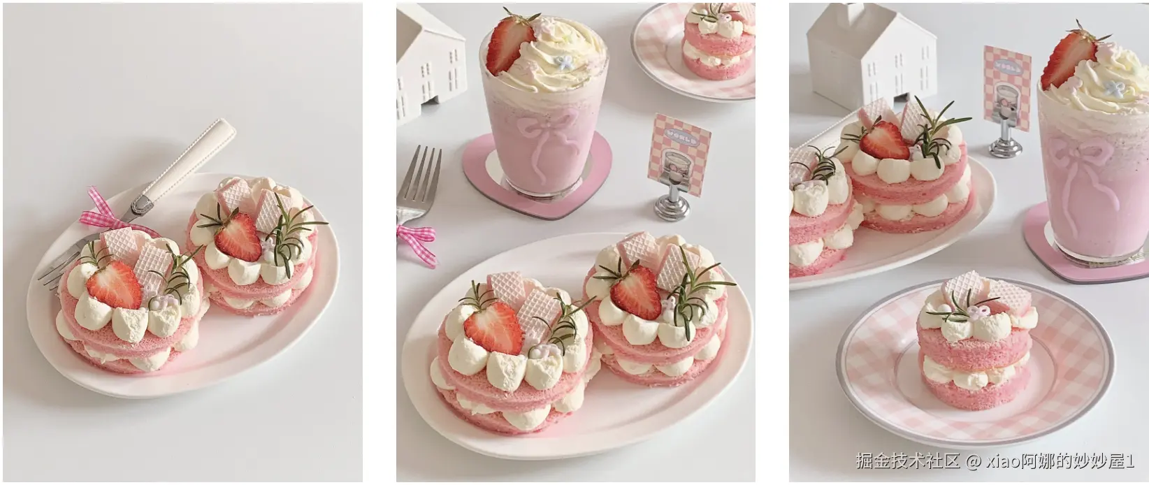 她从手机相册里挑了3张平时用手机拍的蛋糕图(其实拍得挺普通的):
