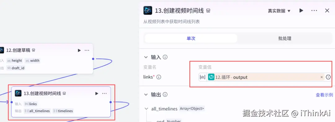 添加第三方插件米核的【剪映小助手】的【video_infos】,根据时间线制作视频数据。