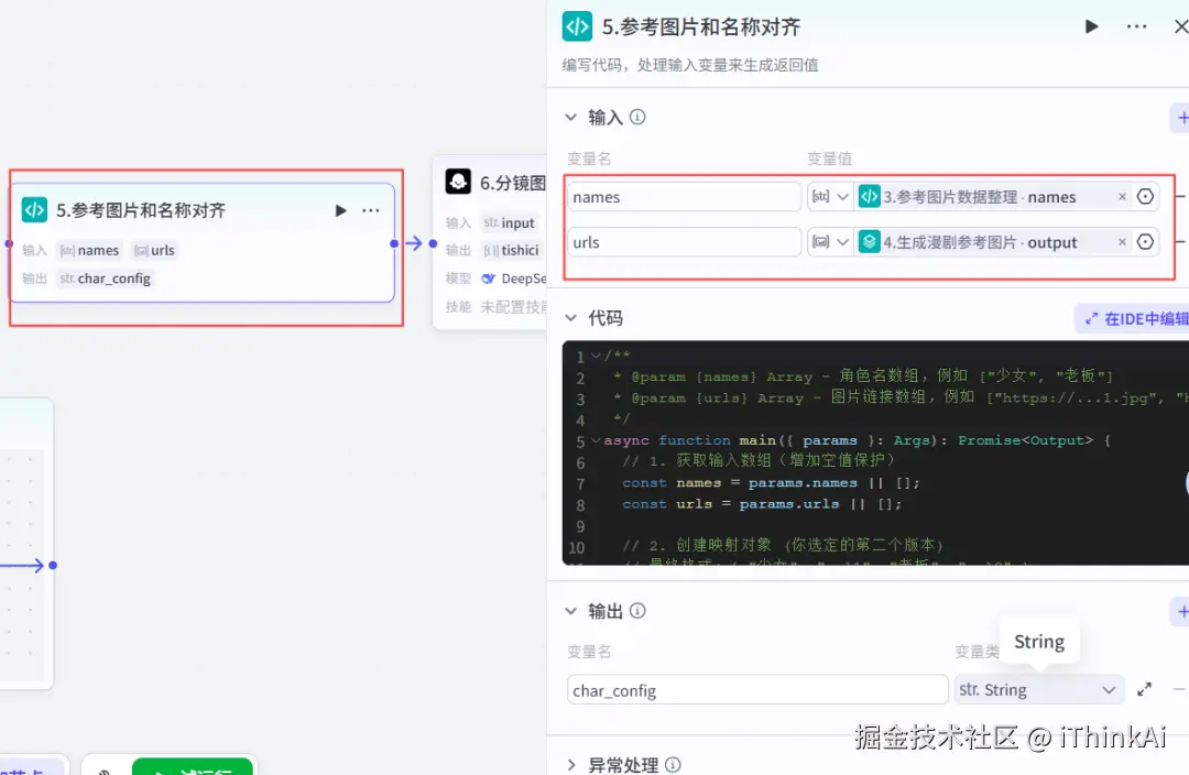 添加代码节点,将参考图片和名称进行对齐。