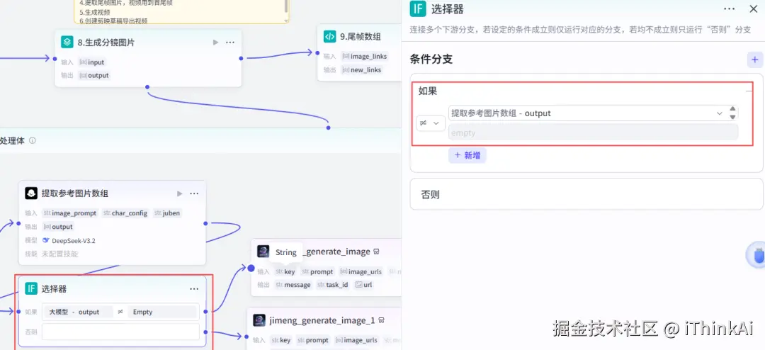 添加大模型节点,提取参考图片数组。