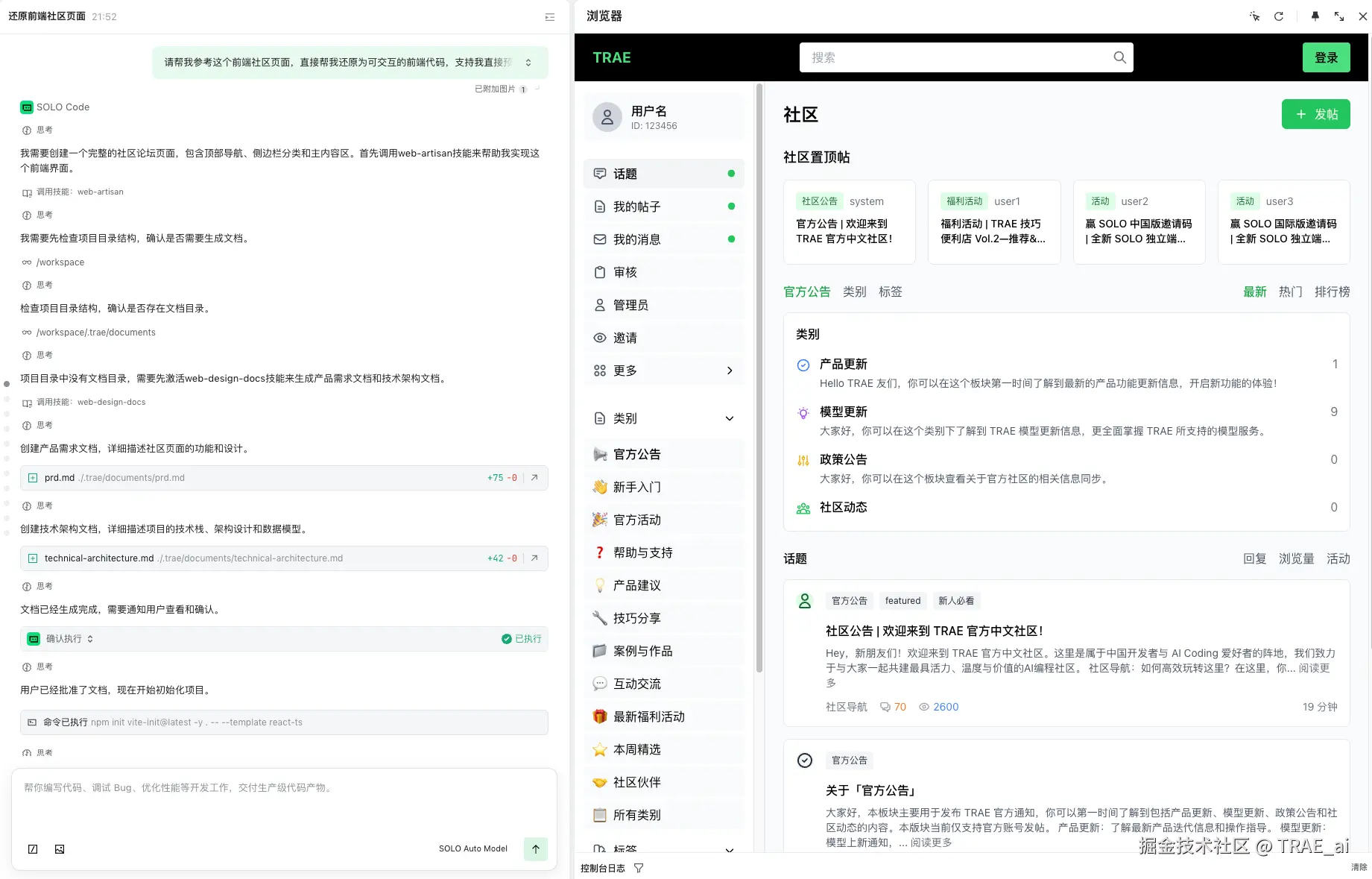 我们本次来复刻 TRAE 官方社区的前端页面。参考图如下👇