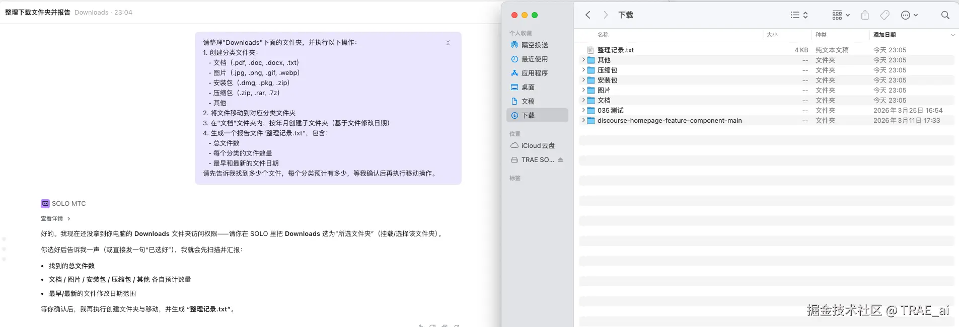 本次展示如何整理电脑端文件的场景,你也可以发散思维,让 SOLO 帮你批量处理文件(例如修改、文件命名、合并文件字段等等)