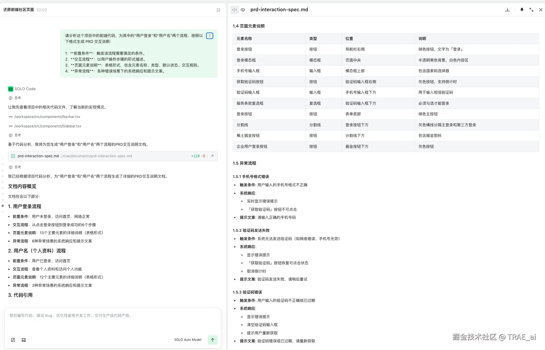 我们直接根据上面生成的原型图,接着让 AI 帮我们输出 PRD。