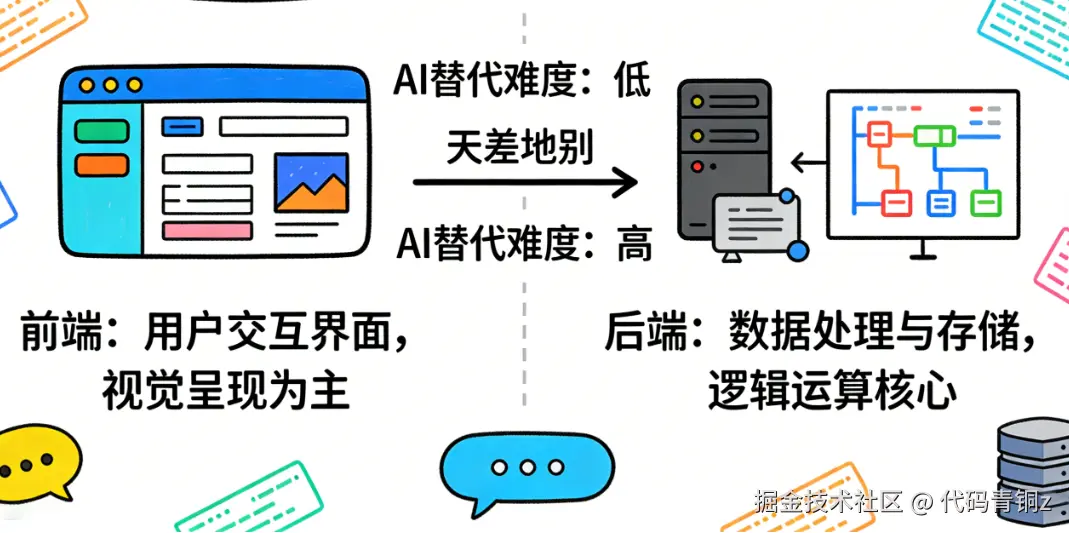 除了代码类型,前端与后端开发的本质区别,也决定了二者被 Vibe Coding 替代的难度完全不同: