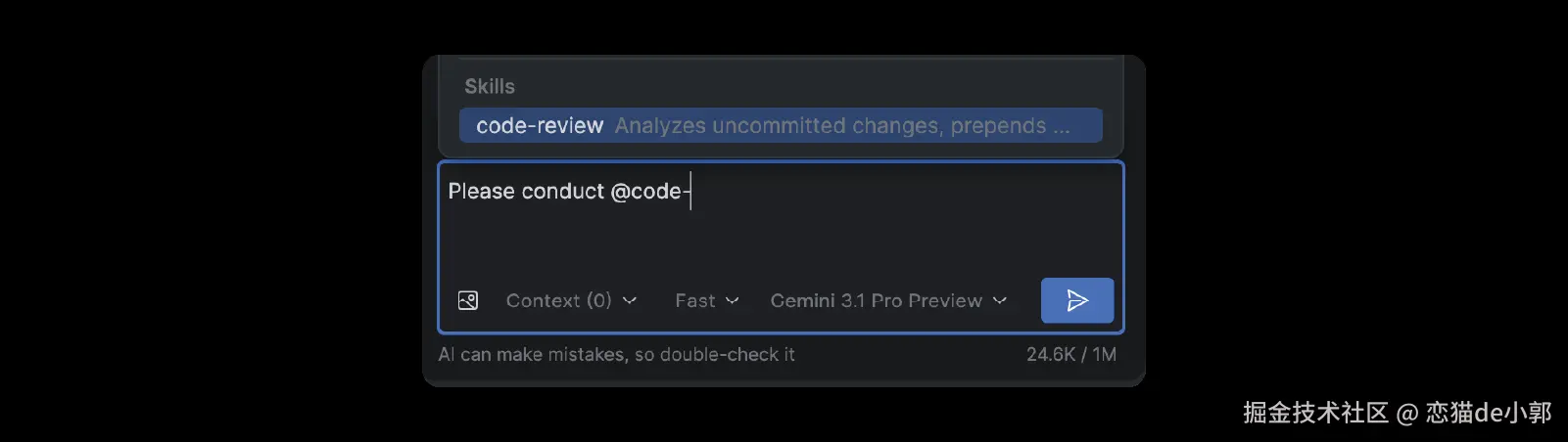 Android Studio Panda 3 发布了,主要是支持了 Agent skills 和 Agent 的权限管理,现在可以在项目根目录创建 .skills 目录来引用和创建技能,不算大的更新,但是为什么要聊聊呢,主要是上一个版本大家一直说的 Gemini 输入问题。
