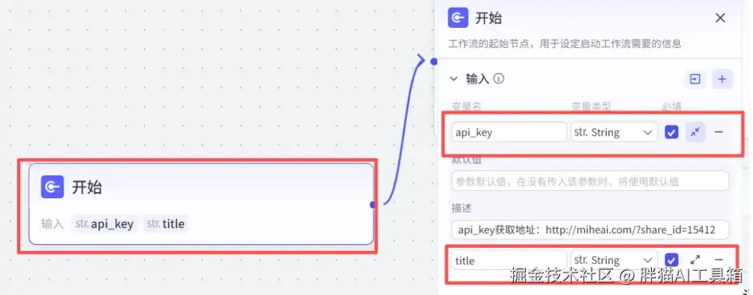 输入主题(如西红柿、土豆等)和调用插件时的密钥(api_key),api_key获取地址为miheai.com/?share_id=1…。