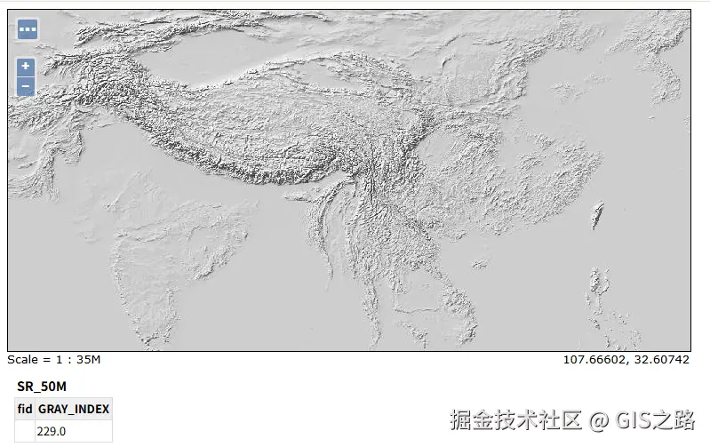 SR_50M山体阴影数据在ArcGIS Pro中打开显示如下。