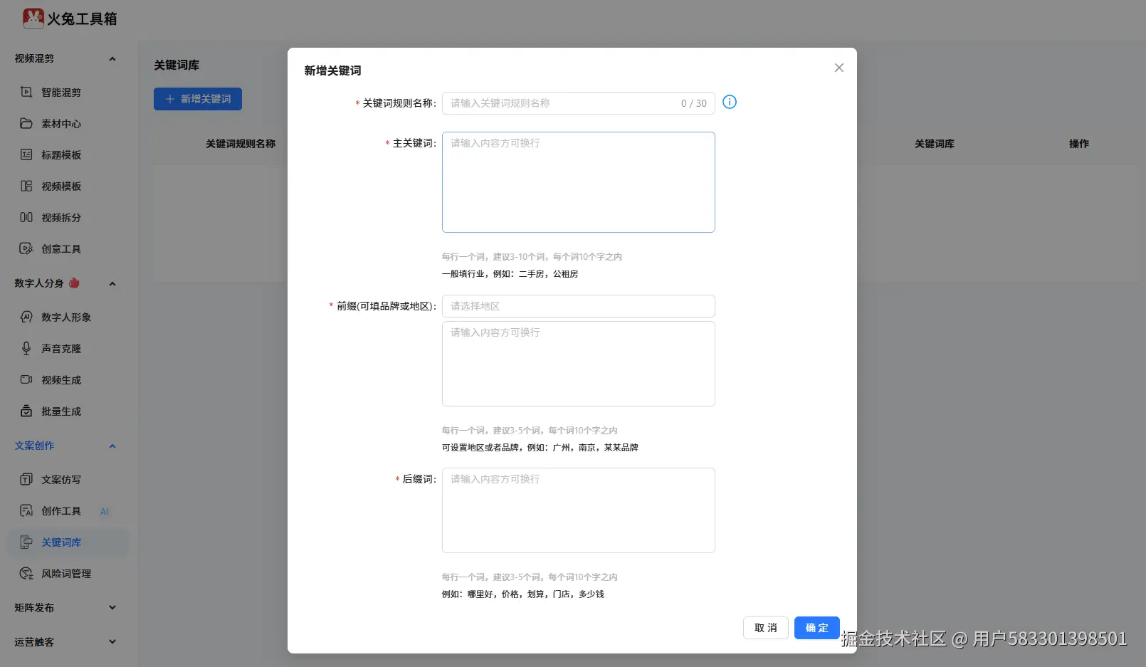 ・第三步:合规优化,助力流量:火兔工具箱内置关键词库和风险词管理功能,能自动检测科普文案中的违规词汇,避免视频被限流,同时还能助力SEO优化,让你的科普视频更容易被搜索到,提升曝光率。