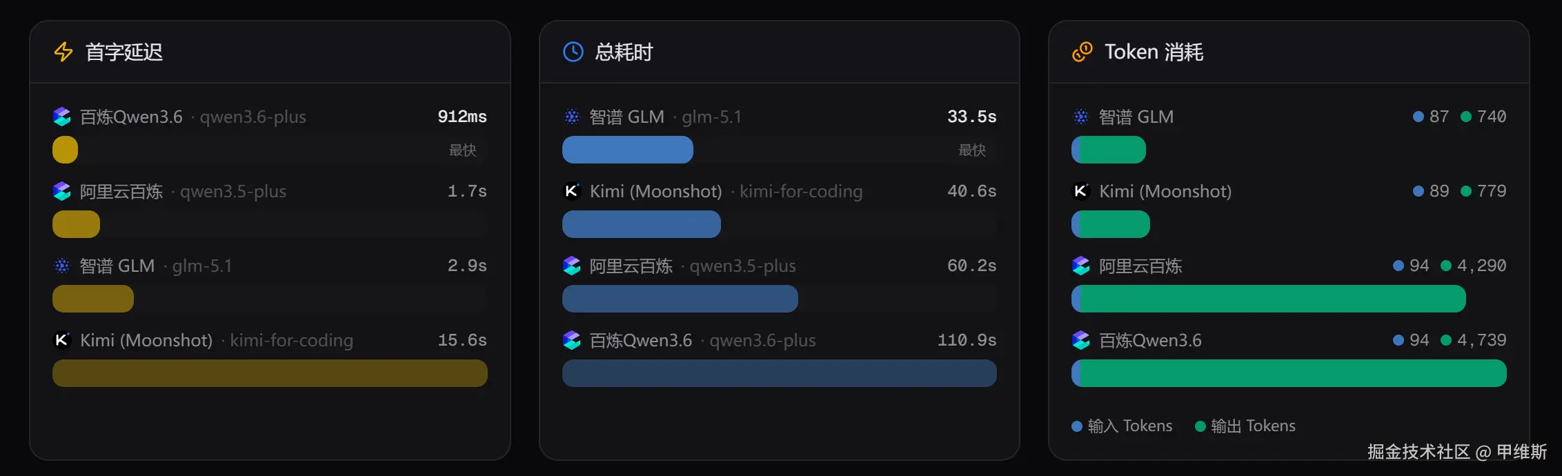 这次的总耗时,Qwen3.5 比 Qwen3.6 低了。