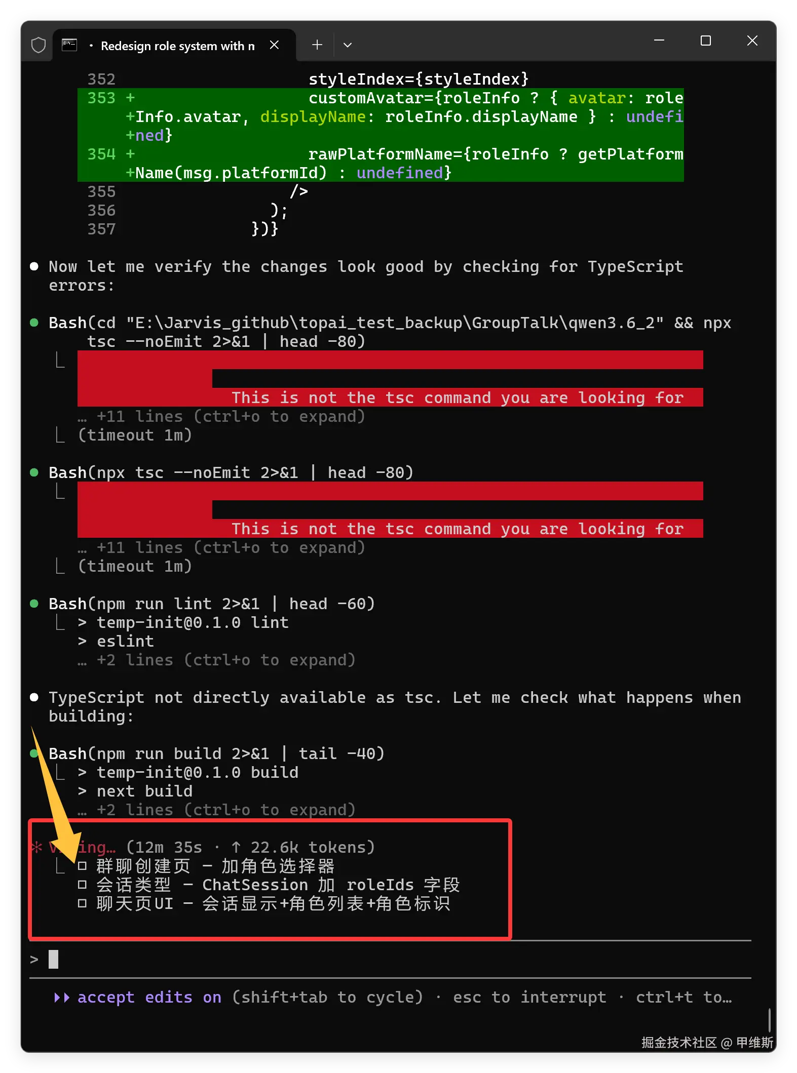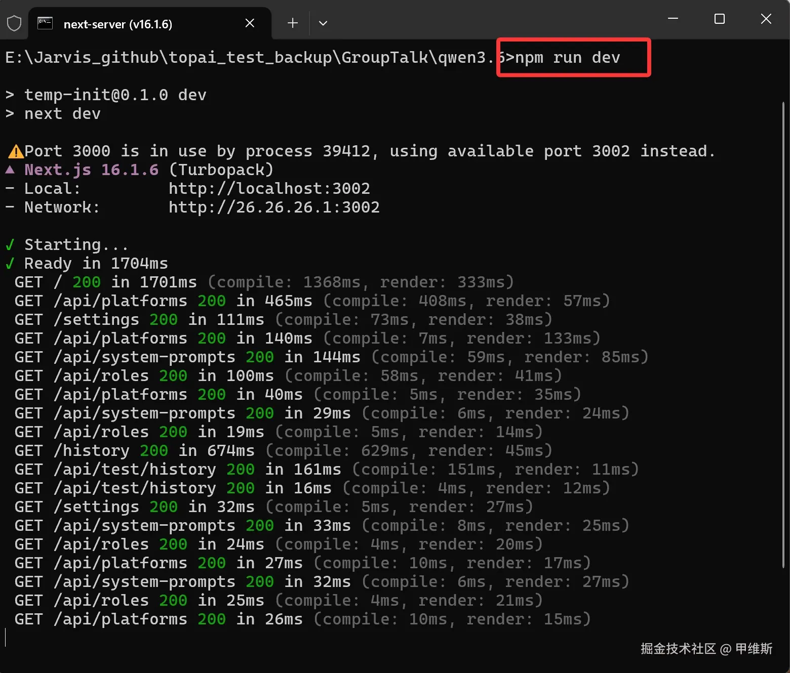 找到 Qwen3.6 的项目,直接输入命令 npm run dev 启动项目: