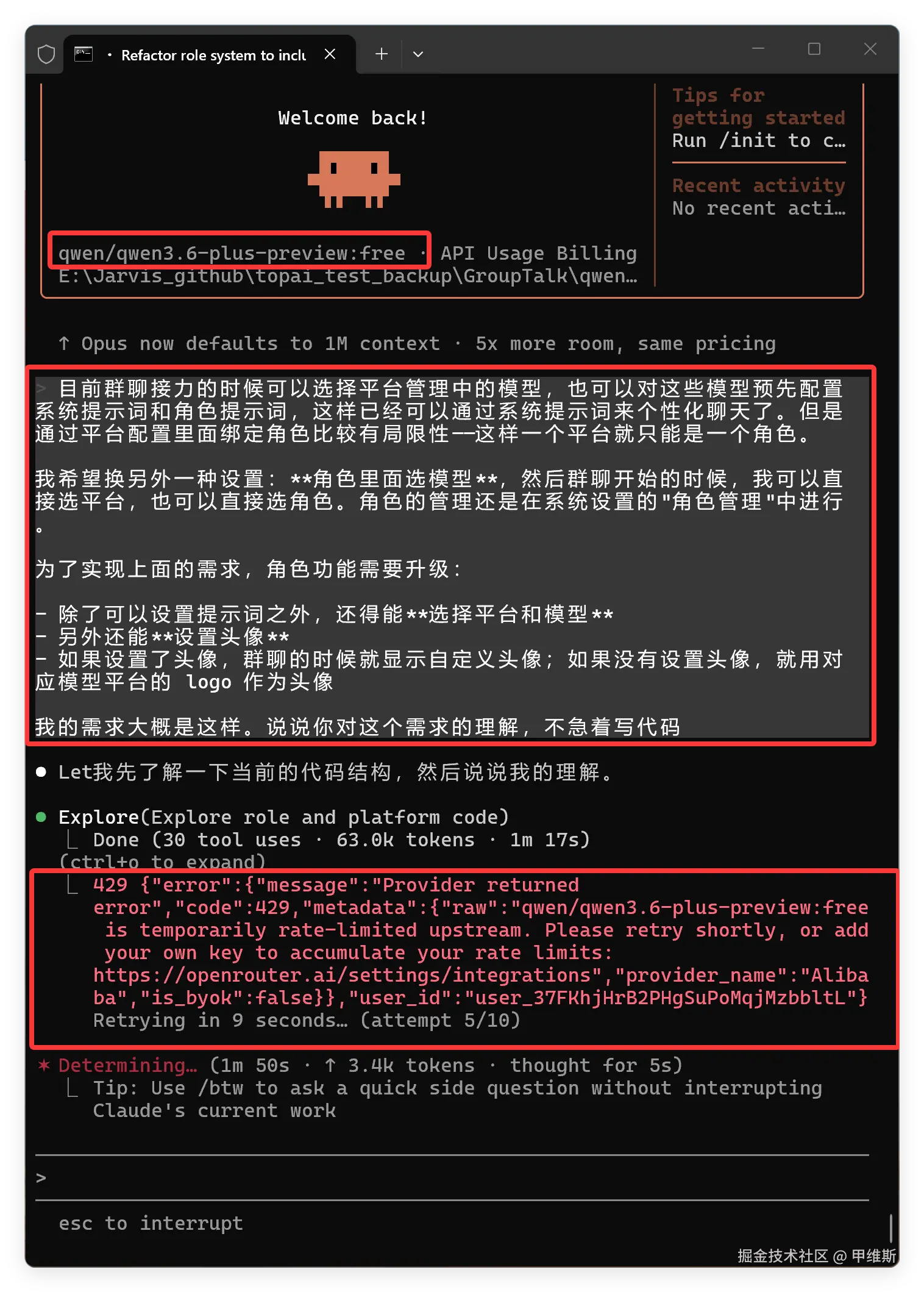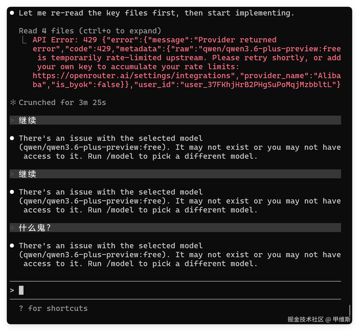 用的模型是来自 OpenRouter 上的 Qwen3.6-plus:free。
