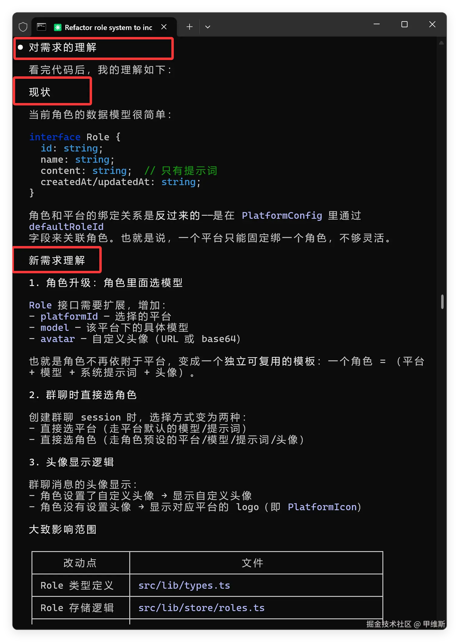 这个需求就是我真实的需求,并不是特别清晰,但是核心都讲到了。我先把这个需求扔给 AI,让它帮我理清楚这个需求。