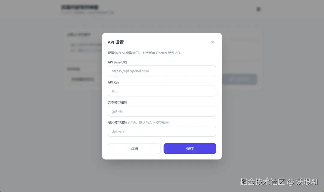 5、写作和生图均支持用户自行调用大模型。调用接口设计成可视化窗口,用户只需要输入模型url、模型key和模型名字,就可以使用。