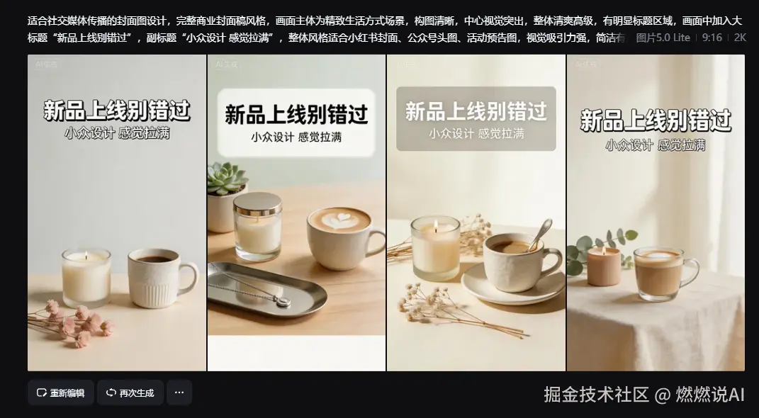 这种场景就更不能只做背景。 因为背景做完你还得再排一次,时间还是被吃掉。 我们更常用的是,直接让 Seedream 5.0 出一张社媒封面成品图,画面本身就带封面感和点击感。