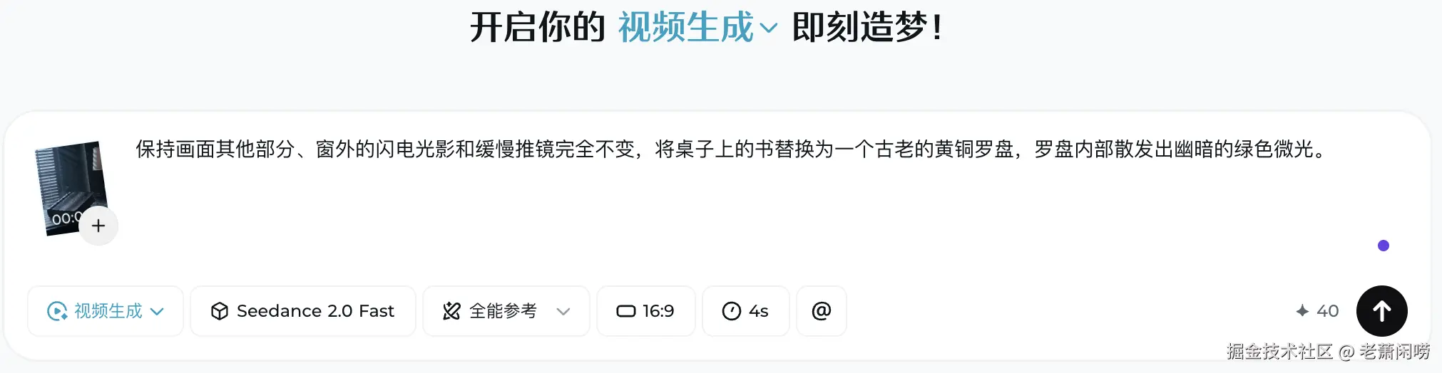 - 导演痛点: 跑出了一段极具悬疑氛围的书房空镜,光影绝佳,但剧本里桌子上放的应该是一个发着幽绿光芒的神秘罗盘,而 AI 默认生成了一本普通的厚书。