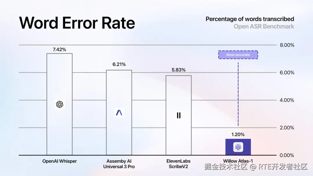 3、Willow 发布 STT 模型 Atlas 1:生产环境词错误率(WER)降至 2.1%