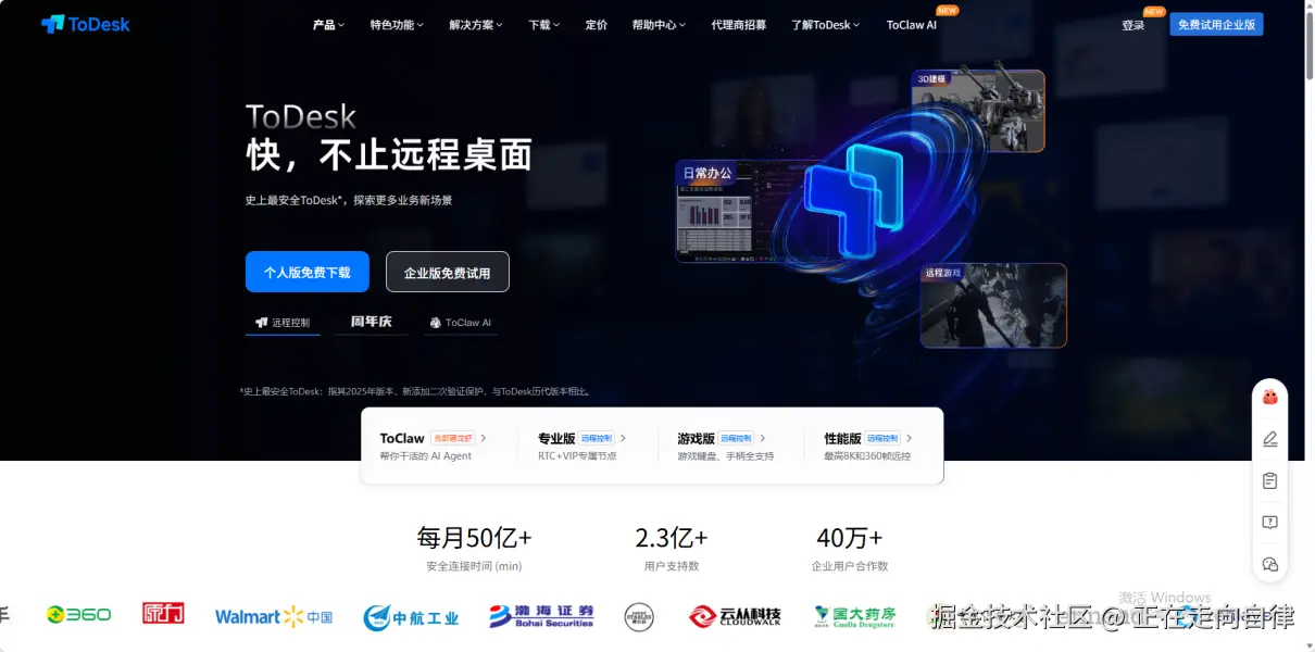 如果说有哪款远控软件在过去几年里真正实现了“弯道超车”,ToDesk无疑是其中之一。到2026年,它已经从当年的新锐成长为个人用户和中小企业的首选工具。