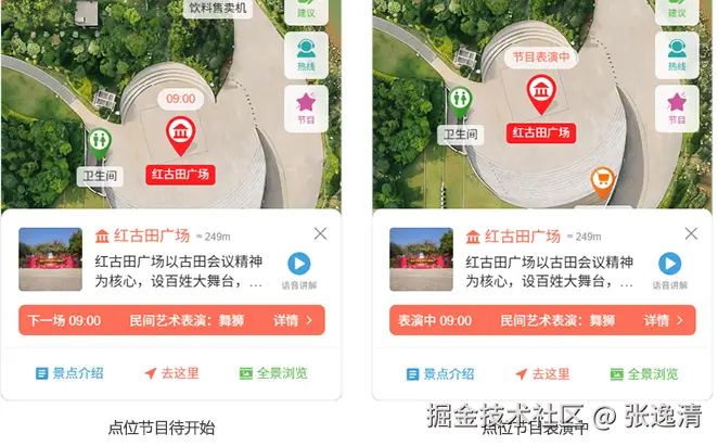 在景区电子地图上,绑定节目与点位(如红古田广场、云水广场),游客可直观看到节目所在位置。