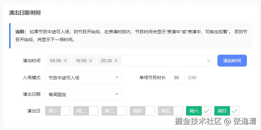 多时段设置:一个节目可添加多个演出时间。