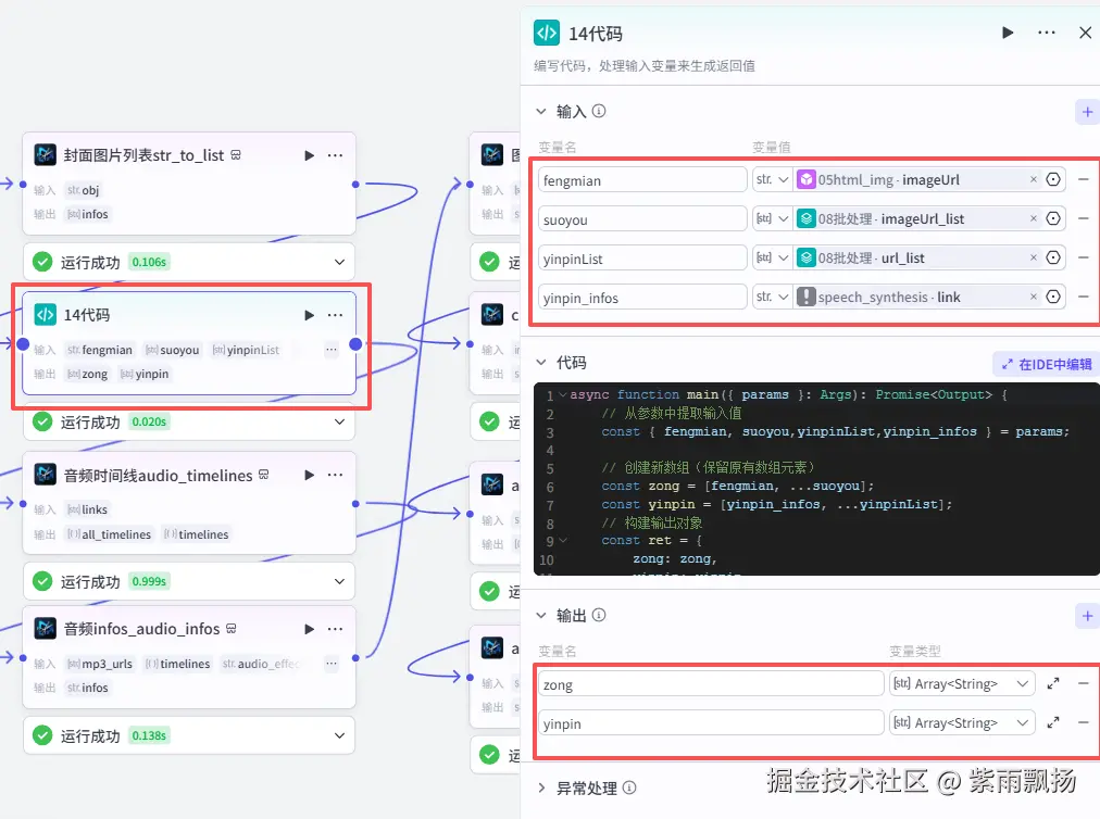 该节点的作用是接收封面、目录、音频相关参数,把它们分别合并返回一个整理好的对象。