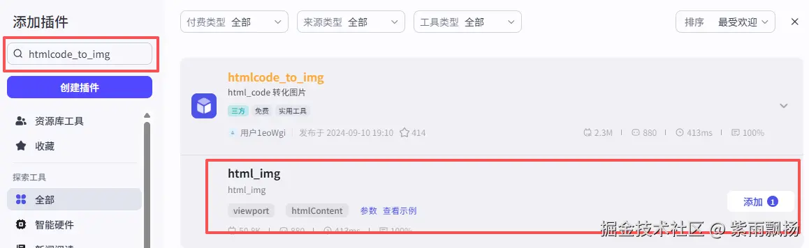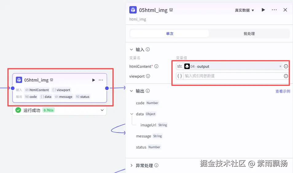 添加一个第三方插件 【htmlcode_to_img】 的 【html_img】 节点->设置参数;