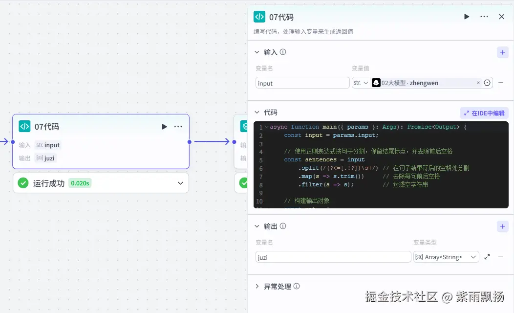 添加一个 【代码】 节点->设置参数;