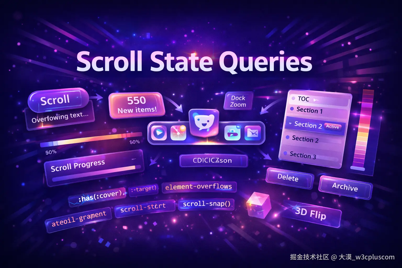 也就是说,样式不再只是对结果的描述,而是可以根据上下文、状态和条件主动做出响应。这种能力让很多过去需要“状态判断 + DOM 操作”的场景,可以直接在 CSS 层完成。